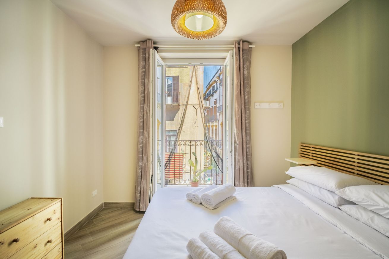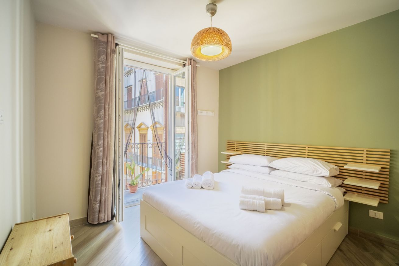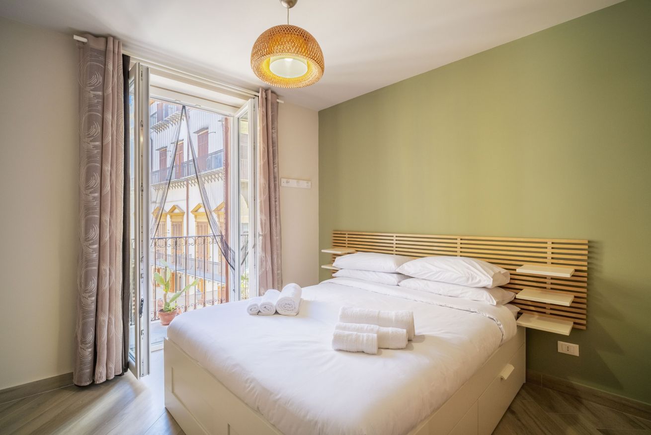 Benvenuti nell'appartamento Eleonora d'Aragona, un elegante trilocale nel cuore del centro storico di Palermo, affacciato direttamente su Piazza Aragona. Dal balcone si apre una vista rara sulla piazza sottostante e sulla facciata di Palazzo Abatellis. L'appartamento ospita fino a 6 persone su due camere da letto confortevoli, con due bagni privati, un soggiorno luminoso con divano letto e una cucina completamente attrezzata. tutto il meglio della città è raggiungibile a piedi.
